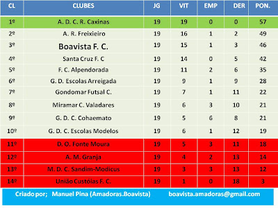 FUTSAL - CLASSIFICAÇÕES ACTUALIZADAS